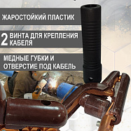 Конструкция отличается усиленной пружиной и изолированной эргономичной рукояткой, которая предотвращает перегрев и обеспечивает безопасность оператора. Винтовой зажим кабеля гарантирует надежный электрический контакт без потерь мощности.