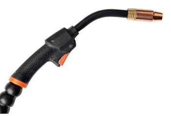 Конструкция из штампованных компонентов обеспечивает прочность и эффективный теплоотвод. Ключевая особенность — два отверстия для фиксации электрода под углами 45° и 90°, что обеспечивает гибкость в работе и оптимальный доступ к сложным соединениям. Медная контактная группа и винтовой зажим гарантируют надежное соединение с кабелем и минимальные потери мощности.